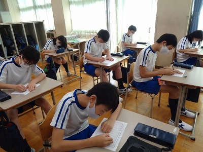 8点で合格でしたが、準備不足だったのか、難しかったのか、合格点に満たない人が多かったです。休み時間に間違ったところを直して、明日のテストに備えました。