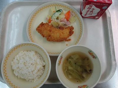 ささみのフライは、衣がサクッとお肉は、やわらかく仕上がっていました。品数が増えて、苦手な食べものも登場する回数が多くなりそうですが、給食にゆっくり慣れて、少しずつチャレンジしていきましょう!