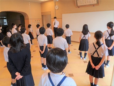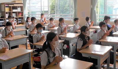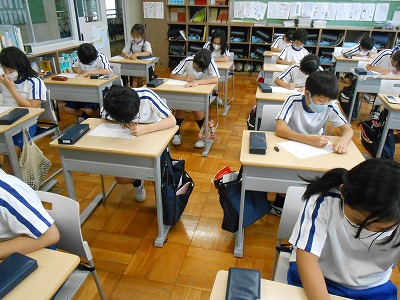 今日は、校長先生から「静寂」についてのお話や「敬老の日」についてのお話がありました。身の回りの整理整頓に気を配ること、心を動かして心を鍛えることなど、自分自身の行動の姿を振り返りながら、クラスで話し合いました。