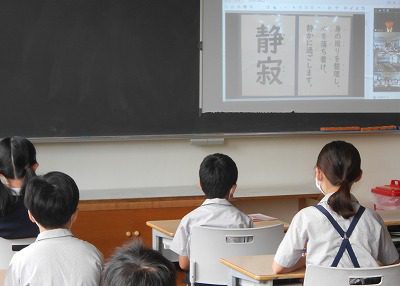 今日は、不審者からの避難を想定した訓練が行われました。しっかりと自分のすべき事を考え、全員すばやく、しずかに避難することができました。