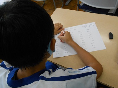 昼根っこタイムは、計算を行います。1学期から続けている「あまりのあるわり算」50問を、時間をはかって取り組みます。