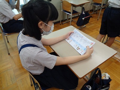 今日は、音楽鑑賞の時間です。「バイオリンとピアノのためのソナタ」(フランンク作曲)の演奏を聴いて、聞き取ったことや感じたことをプリントに記入します。