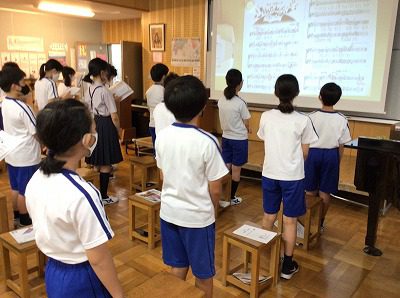 「♪マイバラード」のアルトパートの練習を始めています。音のキャッチが早く、自信を持って歌唱しています。