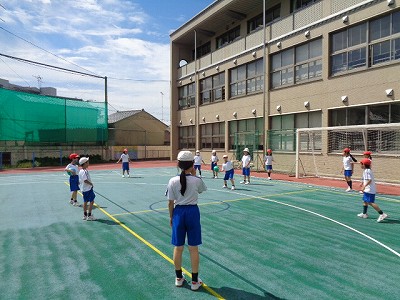 今日の中間休みの様子です。ピカピカの晴天のもと、ダブルドッジをする様子がありました。