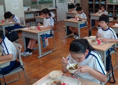 今週から、通常通りの給食が開始になりました。おかずの数も元に戻り、4年生のみんなも大満足のようです。静かに黙々と、おいしい給食を頂いています。