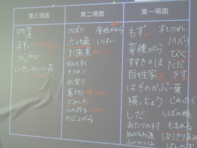 1時間目の国語は「ごんぎつね」を行っています。前回の授業で探した「難しい言葉」をみんなで共有し、役割を決めて言葉の意味調べを行いました。タブレットを使用して、写真を検索し、ごんぎつねが描かれている情景を思い浮かべます。