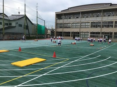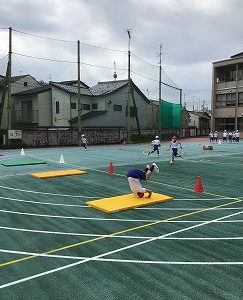 体育は、ハードル走でしたが、少しお楽しみを入れた障害物競走を行いました。