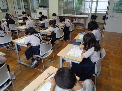 6校時、体育の後の国語の学習です。すっかり体育モードを切り替えて、今日の新出漢字と視写に黙々と取り組みました。今やることに一生懸命取り組む、そんな3年生の姿がうかがえました。