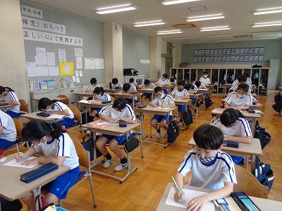 昼根っこの時間。5年生では、毎日漢字10問テストをしています。毎回100点を取っている頑張り屋さんがたくさんいます。漢字は繰り返しの練習が大切です。「継続は力なり」。これからも頑張ってほしいですね。