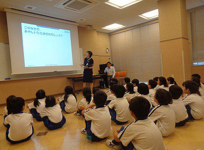 避難訓練の後は、セコムの方から登下校時の安全に関わるお話を聞きました。
