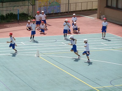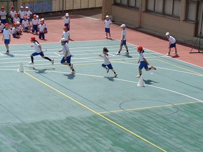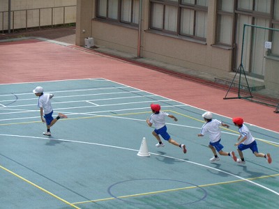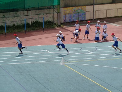 体育の授業は、早速、運動会に向けて、徒競走の練習です。