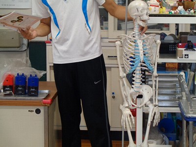 人体模型で確認しながら、ワークブックを仕上げていきます。