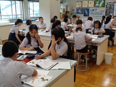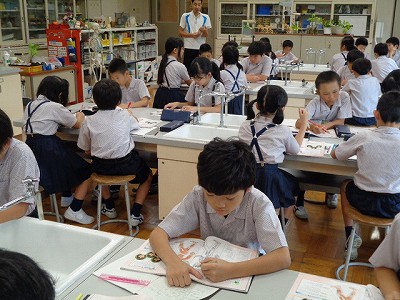 今日の水曜礼拝のあとの音読発表は、中学年です。国語教科書に掲載されている「秋の風景」のページの俳句や秋を表すことば・文章を暗唱して、発表しました。