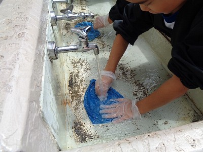 運動場に出て、洗っていくと…