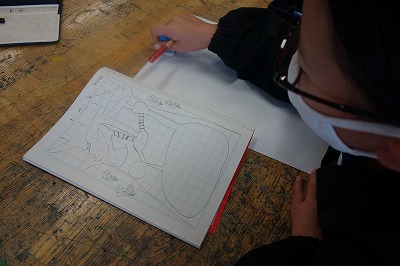 来週は、下絵を確認して版木に写し取り、はやい児童は彫り始めることになりそうです。