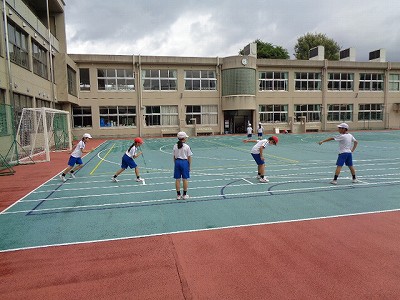 今週は涼しい朝が続いていましたが、今日は雨上がりで少し蒸し暑い気候でした。そんな中ですが、今日は「自分のペースを見つけて、止まらないように走る」という目標を立てて、みんなで5分間マラソンをしました。最後まで一生けんめい走っていた4年生。ついていくのに必死です!!