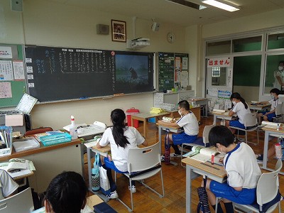 1時間目の国語では、「ごんぎつね」の学習を続けています。前回の授業では、「ごん」について考えを深めました。今日は「兵十」について考えを深めていきます。