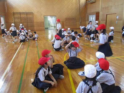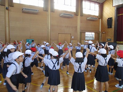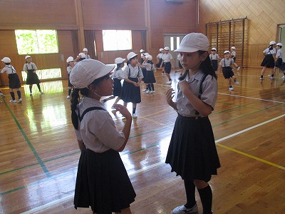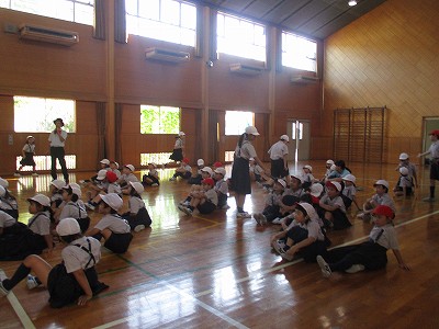 始まる前は、4年生リーダーによる「だるまさんが転んだ英語版」。