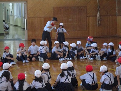 その後は、[What is this? / that?] の答え方や、[Do you like 食べ物?]、英語絵本などを音読して、がんばるメンバー達。あいさつ表現で、名前や学年、尋ね方、別れ際表現を練習した後は・・・・