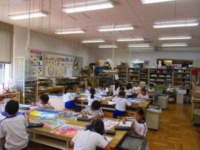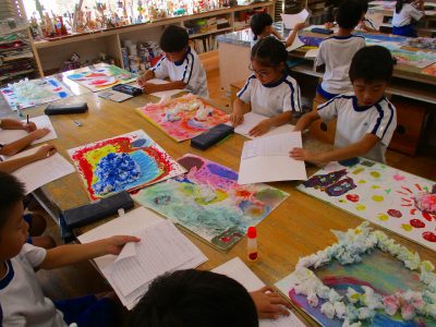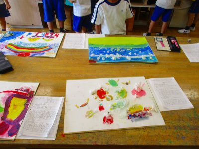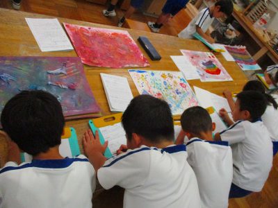 前回の「でこぼこカラフル画用紙」の鑑賞会からスタートです。