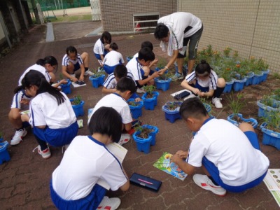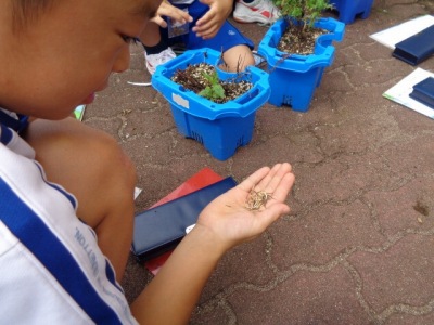 理科の学習では、花の種を観察したあと、その種を取りました。