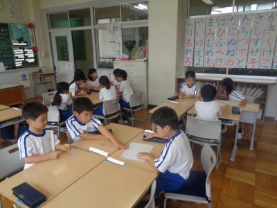 夏休みの宿題で取り組んだ「絵日記」を原稿にして、話しています。