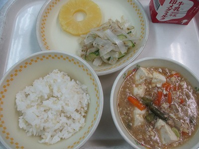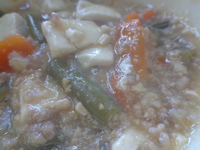 マーボー豆腐の生姜はすりおろしているので、見た目にはわかりませんが、香りよく作れました。
