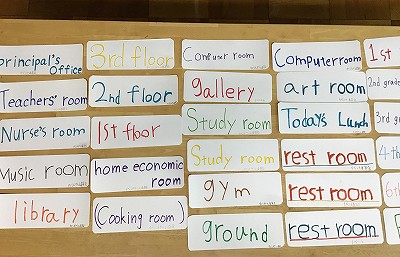 その後、今回の主な活動「校内の英語プレート作り」に取り組みました。簡単ですが、おおかた仕上がりました。後は校内各所に貼るだけです。
