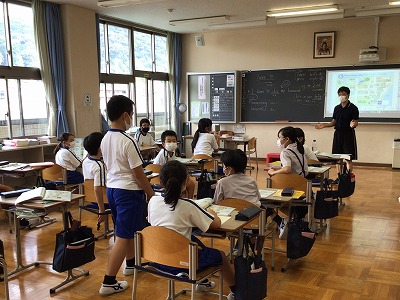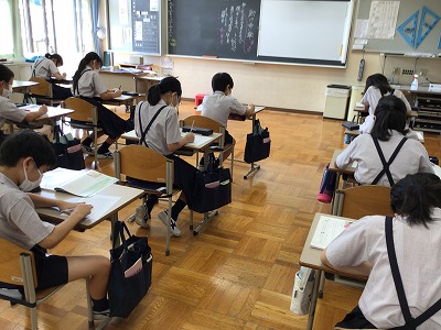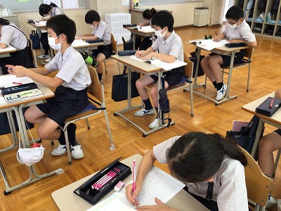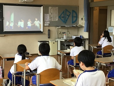 みんなが見守る中、緊張をしつつ活動する5年生。意欲高く、最後まで熱心に取り組みました。
