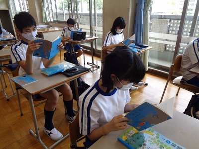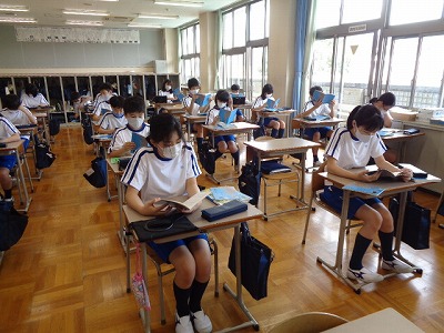 4時間目の国語は、宮沢賢治の「よだかの星」「セロ弾きのゴーシュ」の2作品を黙読しました。