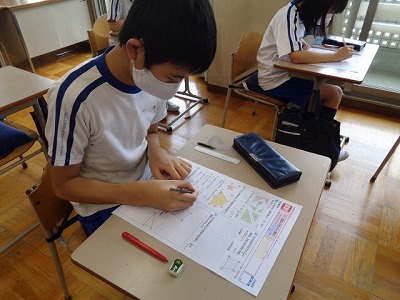 昼からの算数は、予告しておいた2枚のカラーテストを実施。