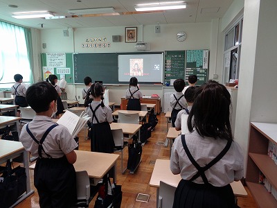 水曜日、静かな朝を迎えました。各教室では心を落ち着かせ、席に着いてリモート礼拝を待ちます。