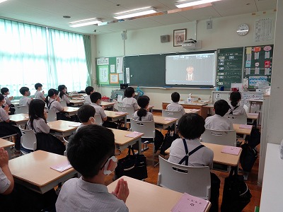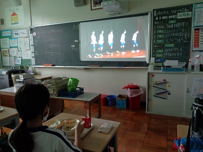給食の時間に、ダンスクラブのビデオでの発表放送がありました。