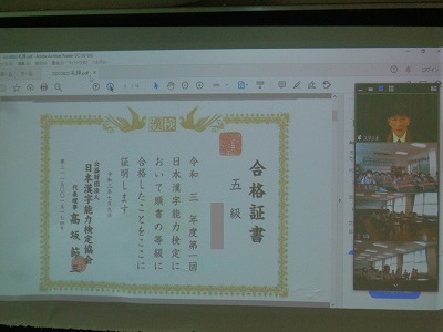 漢字検定5級に合格したお友達の表彰と紹介がありました。
