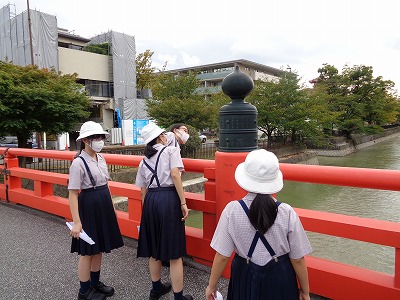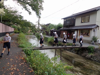 それから校外フィールドワークに出かけました。白川のほとりを歩きます。
