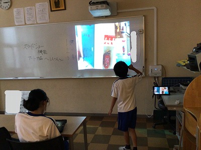トップバッターは「階段」というタイトルで、学校じゅうの階段を撮影し、“折り紙”タイプでぱたぱたと画面が変わっていく機能を使って、披露してくれました。