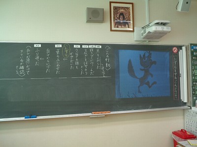 国語は「ごんぎつね」の学習をしています。これまで「ごん」の身の上や「兵十」の身の上について、みんなで話合いを深めてきました。今日は、「ごん」がいたずらをする理由について、本文のいたずらの様子から、みんなで考えを深めていきました。