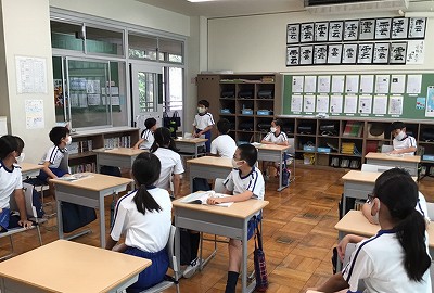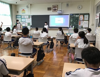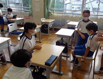 休み時間には、新しいお友達ともすっかり打ち解けた様子の4年生。学校のいろんな事を教えてくれていました。