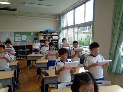 「学問のすすめ」はまさに、「が」=「あ」段からのスタートです。今日は、初回から一回で、「あ」段をはっきり、声をそろえて、勢いのある音読ができました!聞いているこちらも元気が出る音読でした。