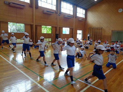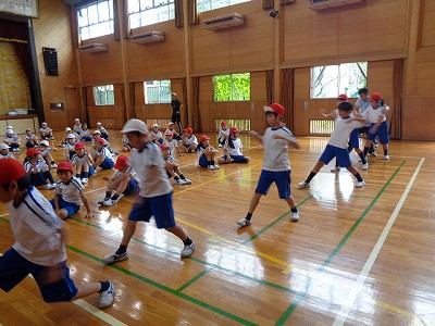 そして、3年生と合同での「文教ソーラン」練習です。今日は、授業の最後に1番のふりつけを曲に合わせてやってみましたら…速い!!! 「1,2,3,4…」と拍を取りながら練習しているとうまくいっていたのですが…。あと、練習するのは10日あまり。がんばるのみ!です。
