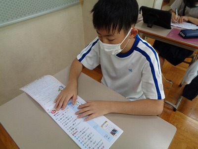 テスト前には漢字ドリルを見て、テストに備えています。