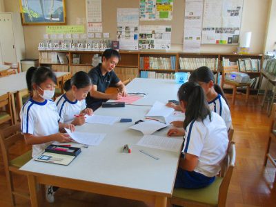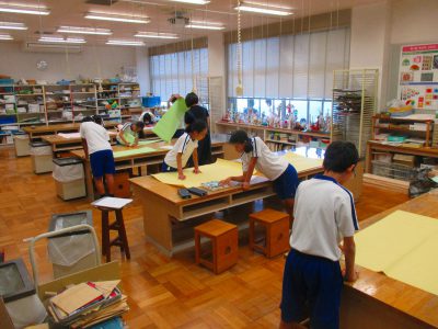 採点の仕方を確認して、新しくなった得点版の色塗りの作業をしました!