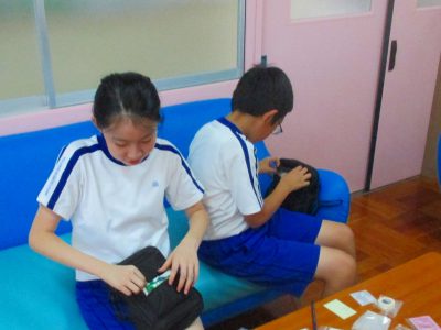 保健バックの確認や、対応の仕方等を学びました!