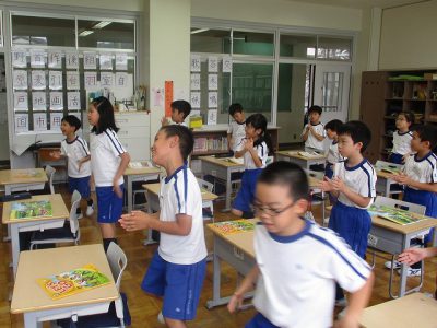 ポール先生とミスターヨコヤマが、英語の歌をのりのりで歌っていました。