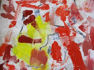 絵の具の色混ぜも、全部を混ぜるのではなく、混ぜないところも残してローラーで塗ると、不思議な色合いになる発見もありました。