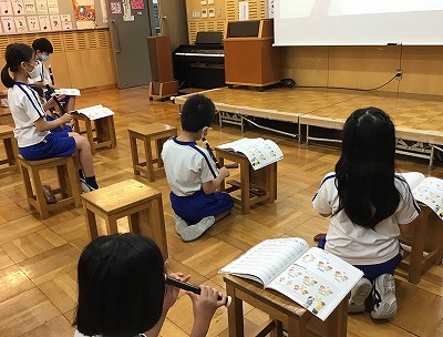 まずは、“エアリコーダー”で指の確かめを念入りに行いました。