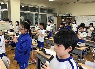 これまで、そのパートもドレミで歌唱する学習を進めていました。今日は、ようやくリコーダーと合わせることができます。範唱のCDに合わせて、ドレミで歌い、リコーダーの指確認は続きます。