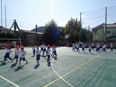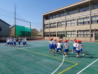 これまでは体育館で練習していましたが、一通りの練習を終えて、今日は運動場に出て練習しました。