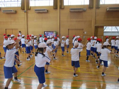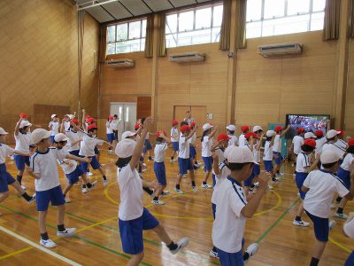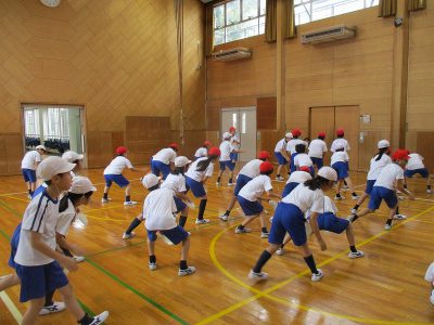 体育は、昨日に引き続き、中学年合同でエイサーの練習です。