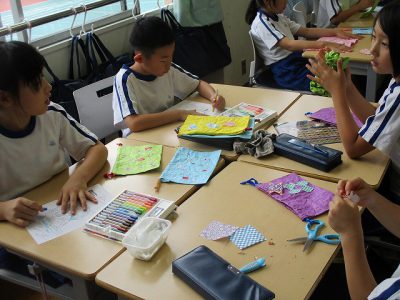 図工では「巾着作り」がいよいよ仕上がってきました。